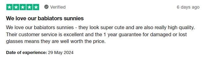 Babiators products are made to be tough to last every adventure you take them on, but we know accidents happen. This is why Babiators offer a "Lost or Broken Guarantee" to replace your Babiators in the first 12 months if an accident does happen. They will replace your sunglasses for free, all you pay is the shipping and handling.